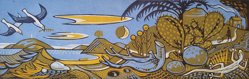 The first was The Sea Says, a two plate linocut, titled after the Marc Almond song. The sea says “Now Don’t go to pieces – things can’t be so bad, why looking so sad?”