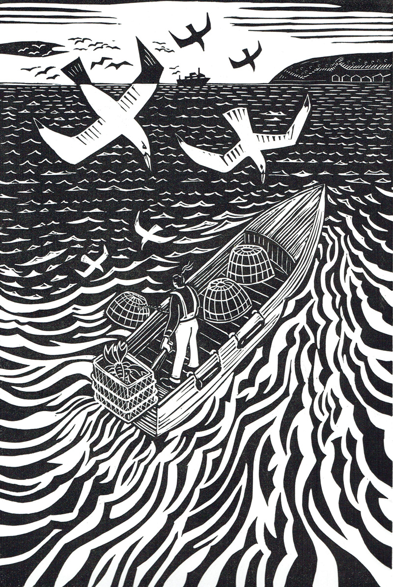 And this year I used a similar sea from the original Dreamer linocut in my illustration for Withy Fishing in Craftland by James Fox, published in September 2025