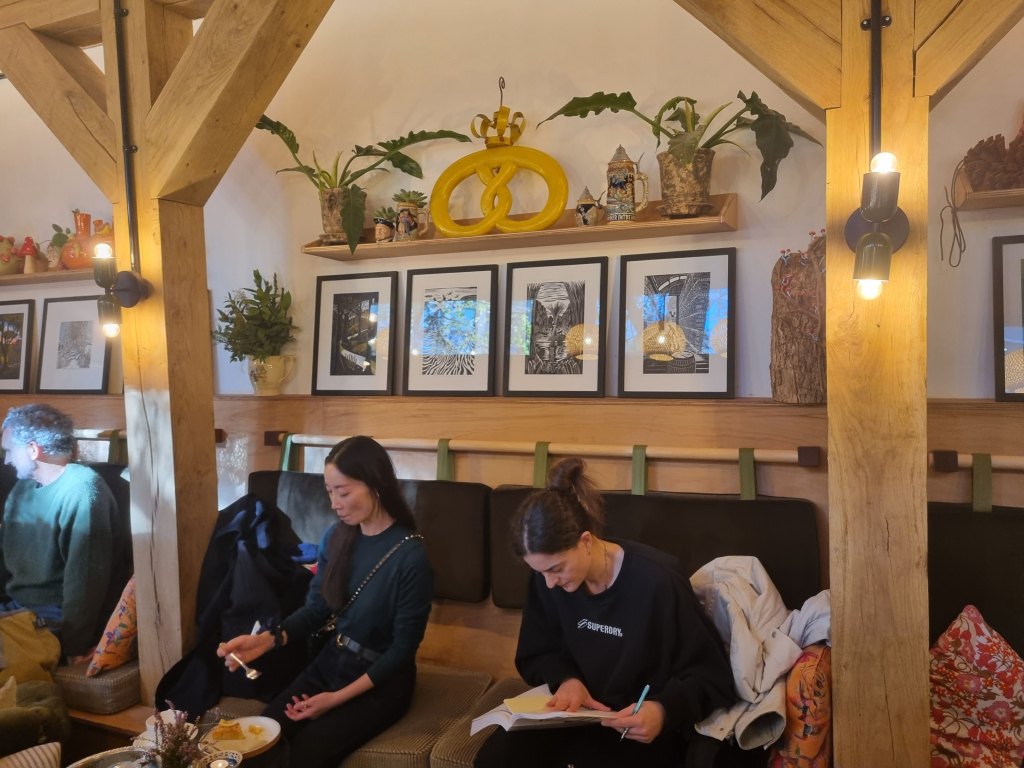 Outer Worlds in the Pavilion cafe features my linocuts for Craftland and recent linocuts and hand coloured etchings.