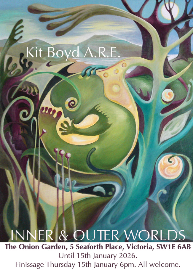 My show at The Onion Garden in Victoria is split into two sections: Inner Worlds in the Orangery at the end of the garden, and Outer Worlds in the Pavilion cafe at the entrance.